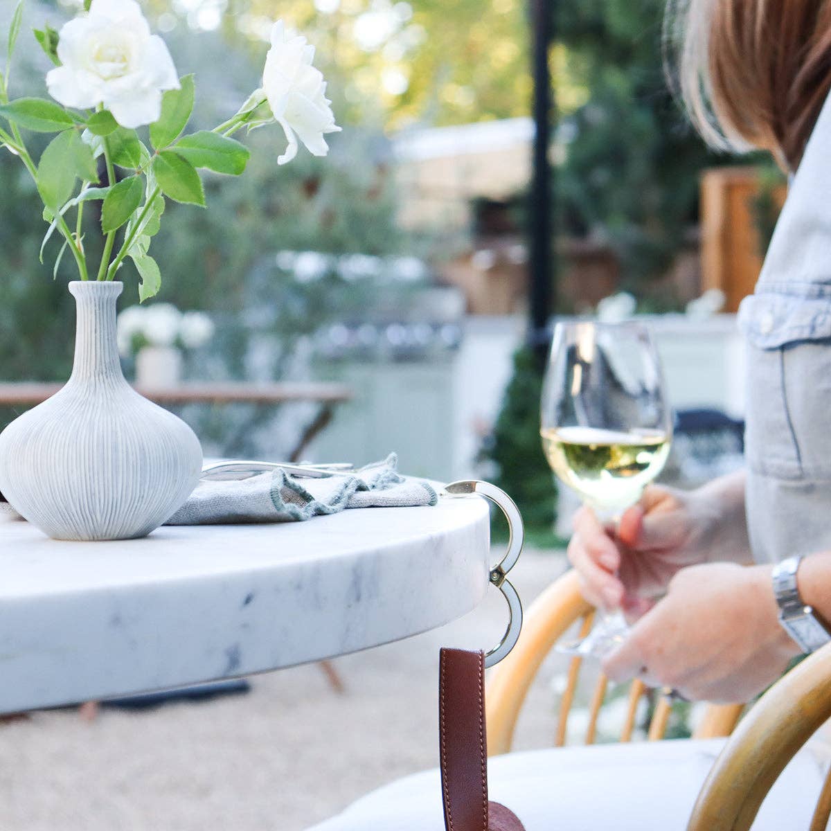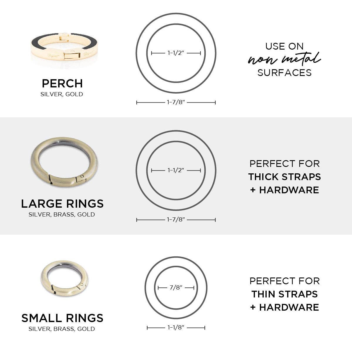 Add Perch to your Bagnet, or use alone to hang your bag on the edge of tables, bars, or chairs made of any material. Perch unlocks and opens into a hook to hang your bag, no metal required. It's perfect for wooden benches, tables, chairs, bars, and more. Plus, did we mention it holds up to 38 pounds? Now THAT is a heavy purse!